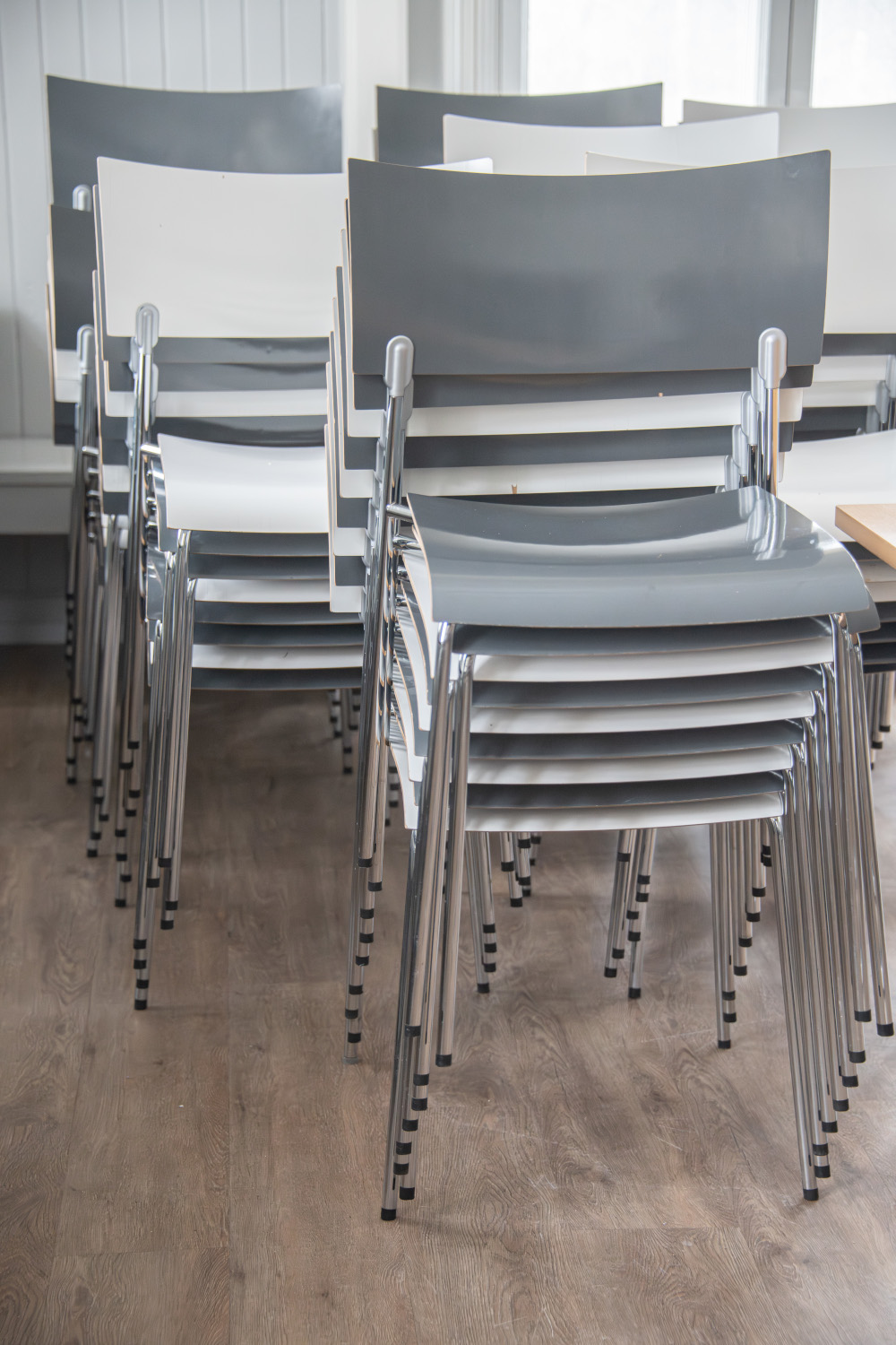 Tuolit: - tuoleja 90 kpl - salin kolmella sivulla seinänvieruspenkit